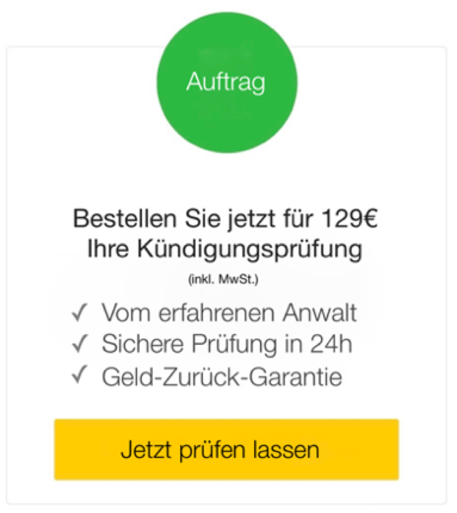 Der Kündigungscheck erfolgt in weniger als 24h und hat folgenden Leistungsumfang: